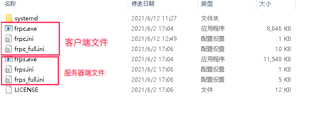 1.在前面已经让你下载好windows的frp文件了,现在来介绍一下文件里面的东西。