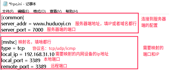 2.配置客户端的配置文件frpc.ini